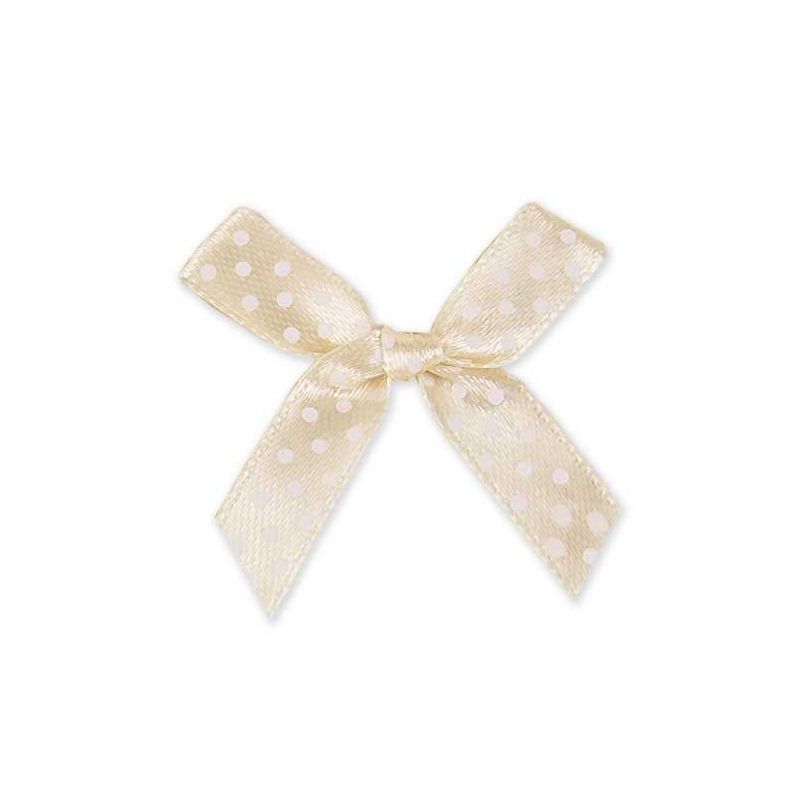 Lazo de color rosa con lunares blancos, perfecto para decorar los regalos de un bebé o colocarlos como pin en un traje.¿Aún no has decorado los regalos? Utiliza estos lazos para darle el toque qu